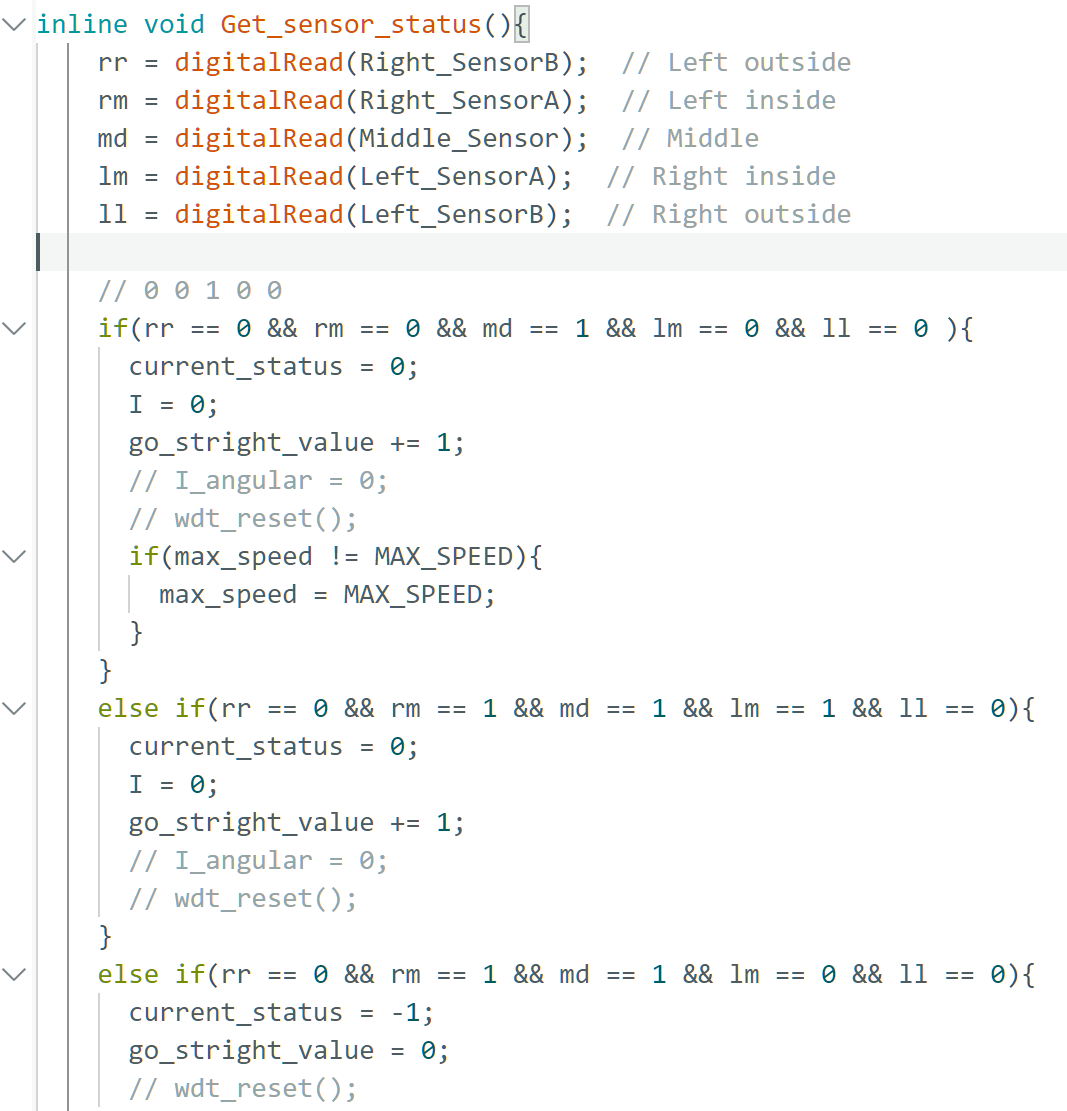 在转弯过程中,5路传感器的传感基本保持在内路控制,外侧的传感器很少响应。在贝叶斯优化的效果下,小车的运行状态稳定,达到了预想的效果。