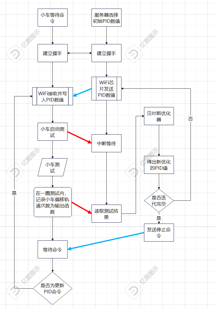 可以看到,优化系统不断迭代寻找最佳参数。我们在现场也进行肉眼观察,检测小车的效果。