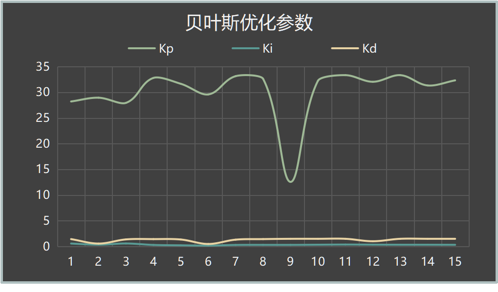 按照之前的经验,我们将KP的搜索空间定义在5到40,KI的搜索空间定义在0-0.5,KP搜索空间定义在0-2。