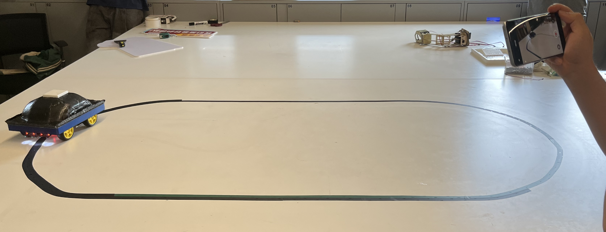 对装有电动机的小车进行路径追踪能力测试。在标记有特殊路径的赛道上进行,小车通过其内置的自动驾驶系统来跟随这些轨迹。同时要求运行十分钟,对于电池与电机的稳定输出能力提出要求。