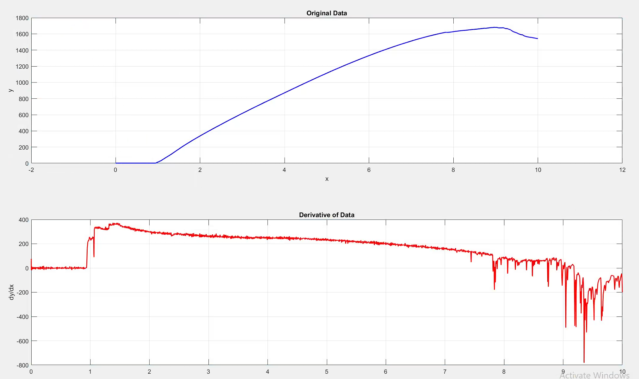 dy_dx = gradient(y, x); % 使用 gradient 函数计算导数