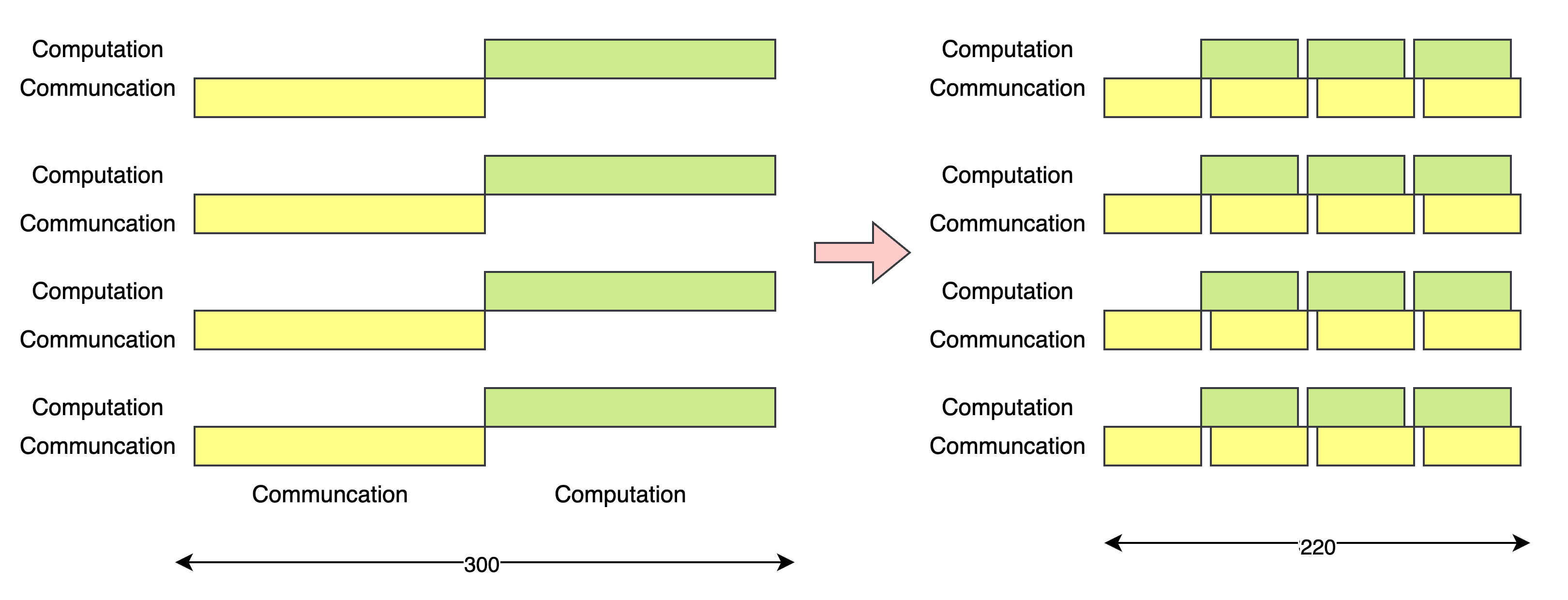 So one of the idea is to do overlapping. After getting all the data, we may use async MPI api like MPI_Isend with a technique call double buffer as the following figure shows: