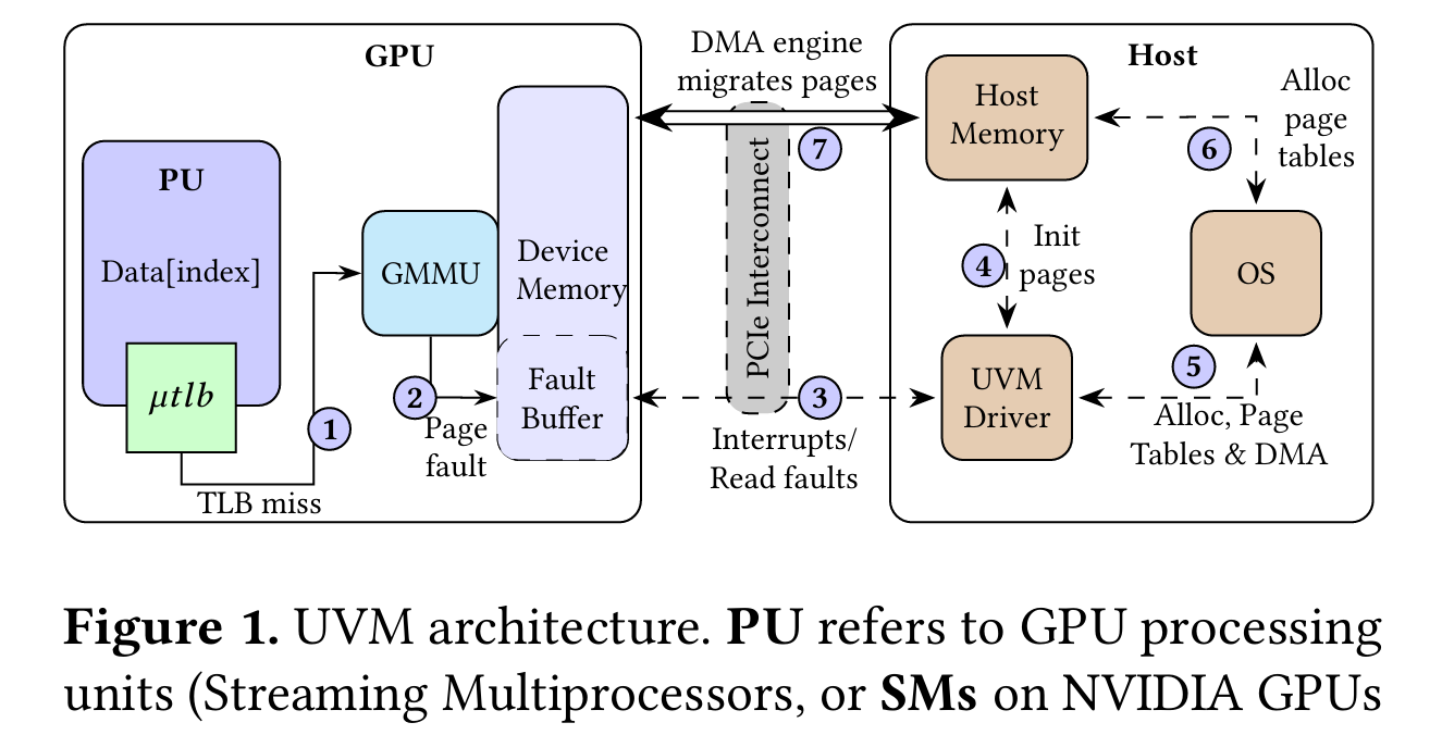 例如,UVM 在 GPU 中处理缺页时会产生较大的开销,并且由于基于页的交换机制,还会导致读写放大问题。