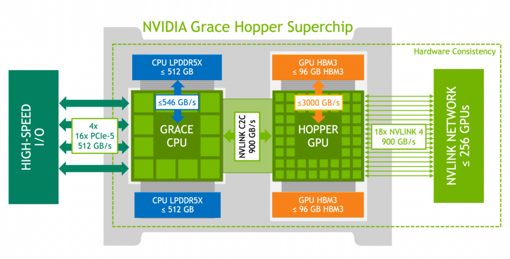 - Grace CPU:连接 480 GB LPDDR5X 内存;