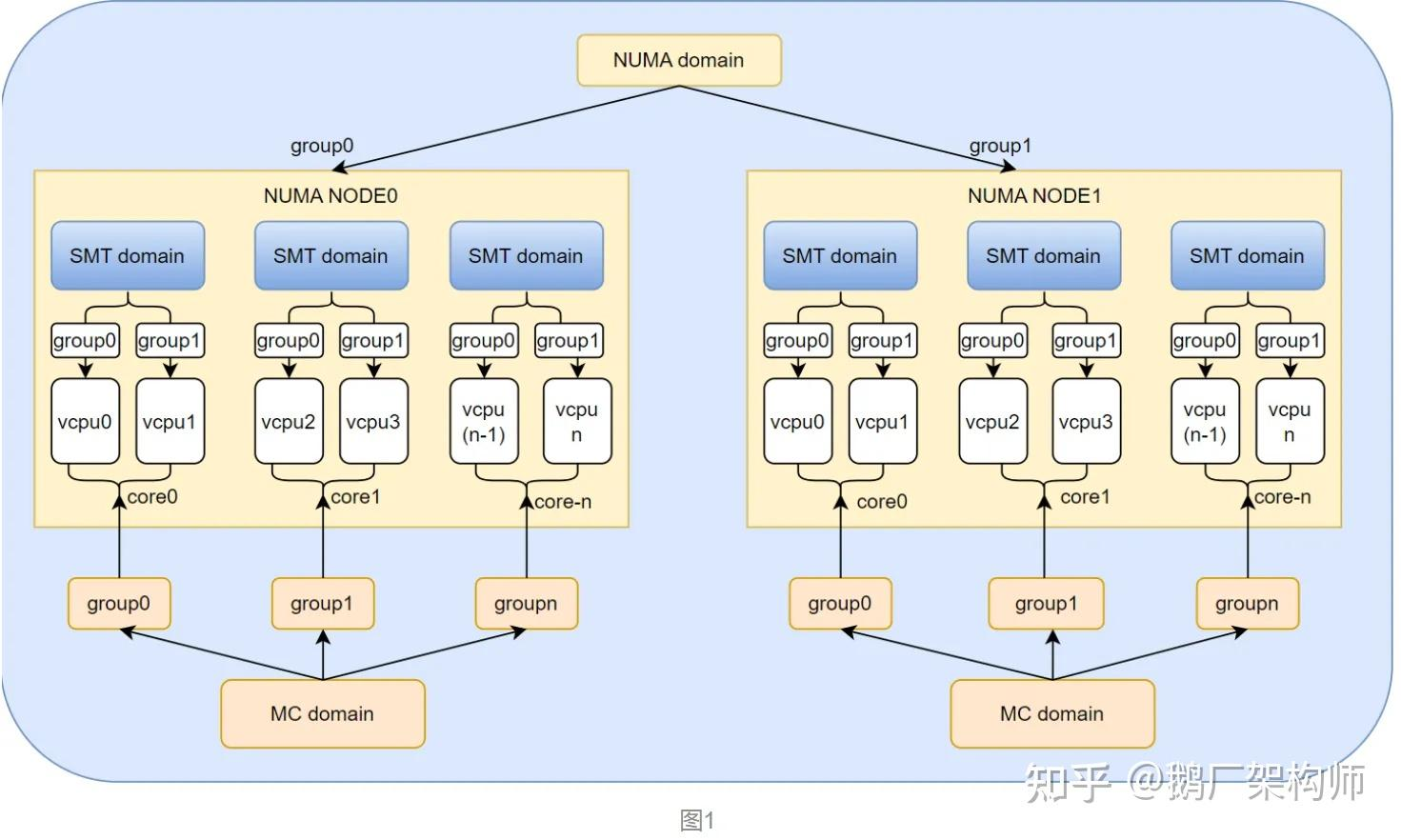 - NUMA 优化:在多核系统中,Linux 还会考虑 NUMA(非均匀内存访问) 架构,尽量将任务分配到靠近其内存的核上,减少跨节点访问的延迟。