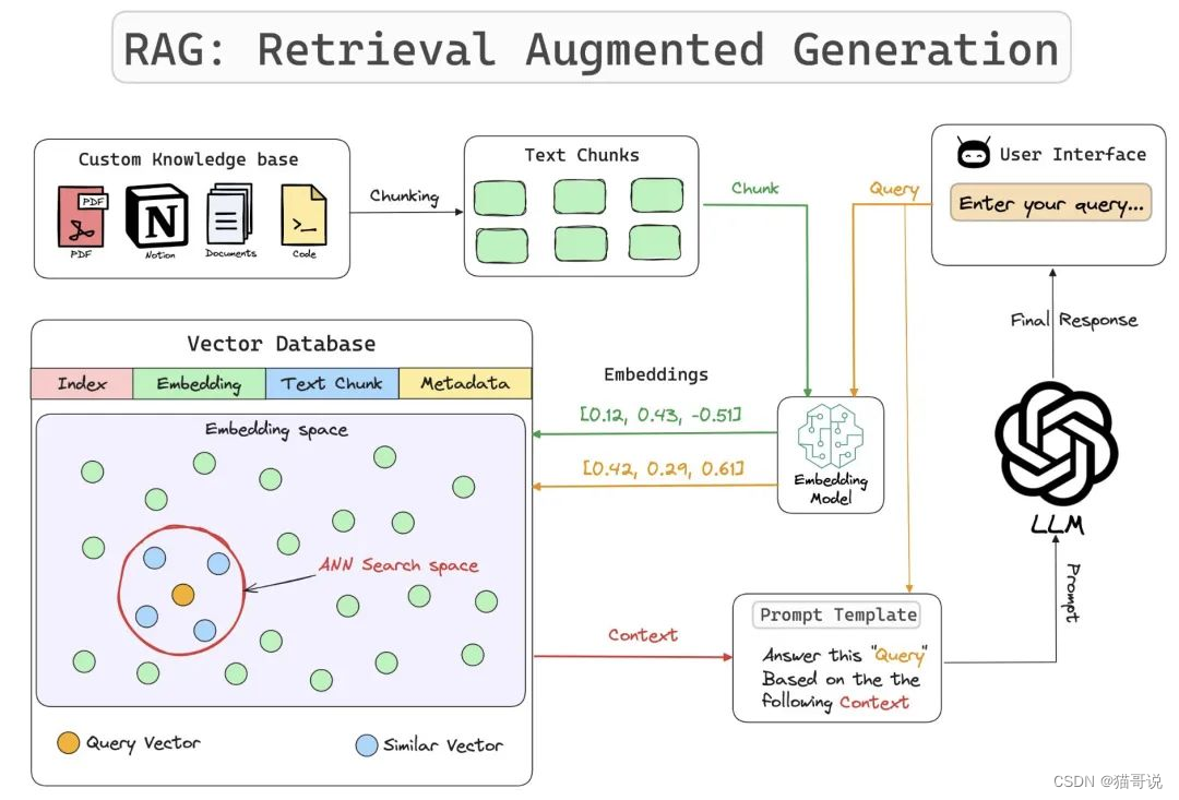 检索增强生成(Retrieval Augmented Generation,RAG)整合了从庞大知识库中检索到的相关信息,并以此为基础,指导大型语言模型生成更为精准的答案,显著提升了回答的准确性与深度。