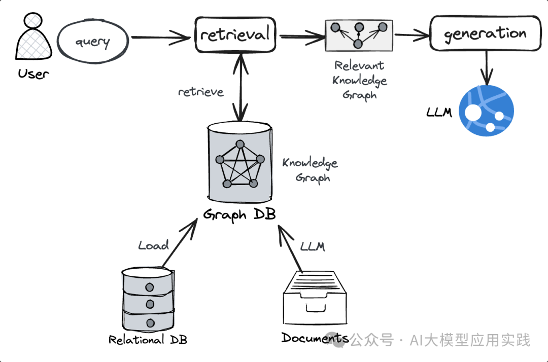 借助Text-to-GraphQL :把自然语言的输入借助LLM与Text-to-GraphQL技术转换为图数据库的查询语言(比如Neo4j的 Cypher 语言),再使用图数据库的查询语言从知识图谱中检索出需要的知识。